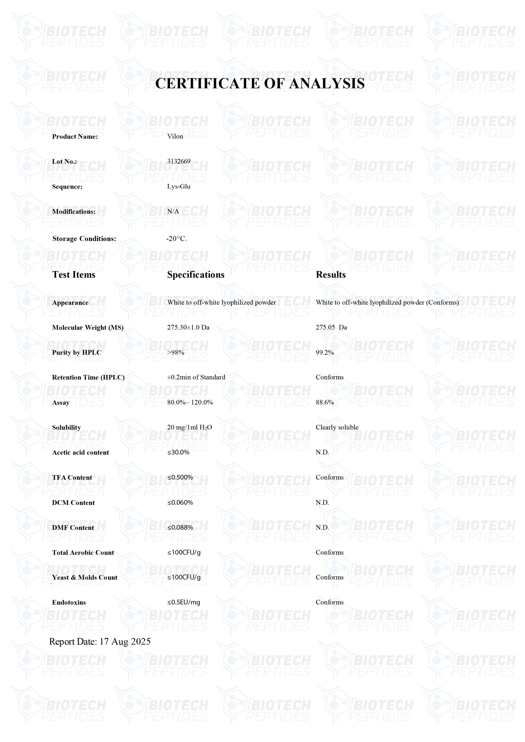 Vilon (Lys-Glu) 20mg – Research Peptide